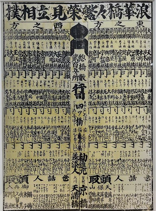 ⼤坂の橋を相撲取りに⾒⽴てたこの作品では、四ツ橋が 「⾏司」として紹介されています。